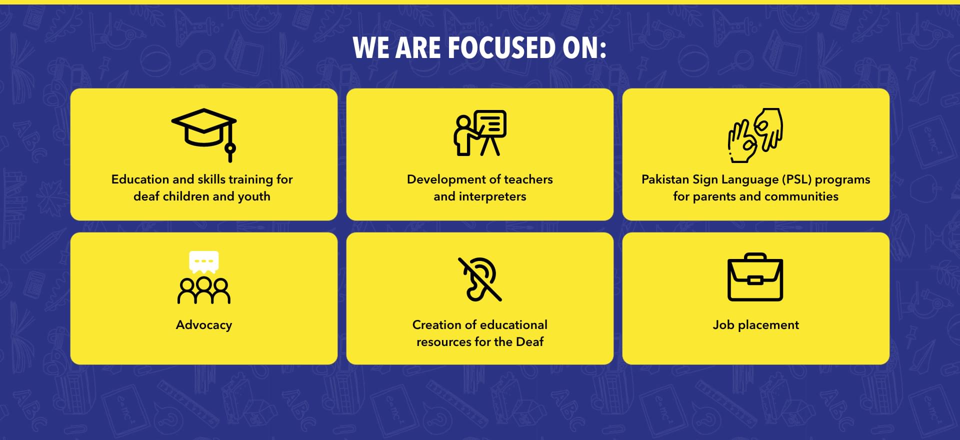 - Network of collaboration with 200 plus schools for the deaf in Pakistan.